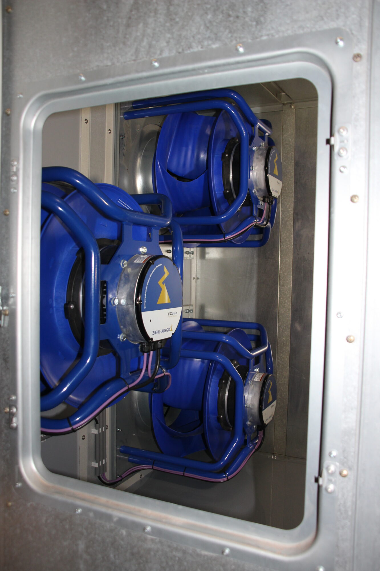 De bestaande V-snaaraangedreven ventilator werd vervangen door een direct aangedreven EC-ventilator met energieklasse IE5. Daarnaast werd de gehele LBK gereinigd en technisch gecontroleerd. Omdat de kast zelf nog in goede conditie verkeerde, kon de oplossing volledig worden gerealiseerd zonder de LBK te vervangen. Een flinke besparing op kosten én materiaalgebruik.